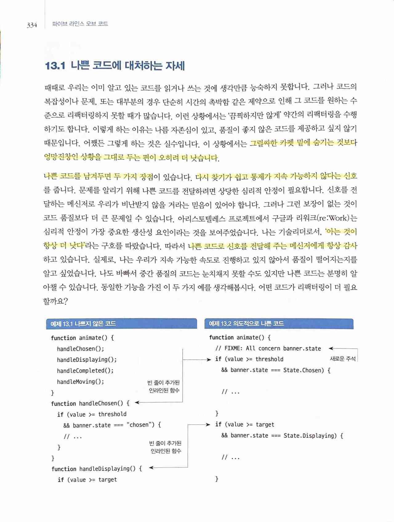 나쁜 코드를 남겨두면 두 가지 장점. 다시 찾기가 쉽고 통제가 지속 가능하지 않다는 신호... '아는 것이 항상 더 낫다'... 나쁜 코드로 신호를 전달해 주는 메신저에게 항상 감사