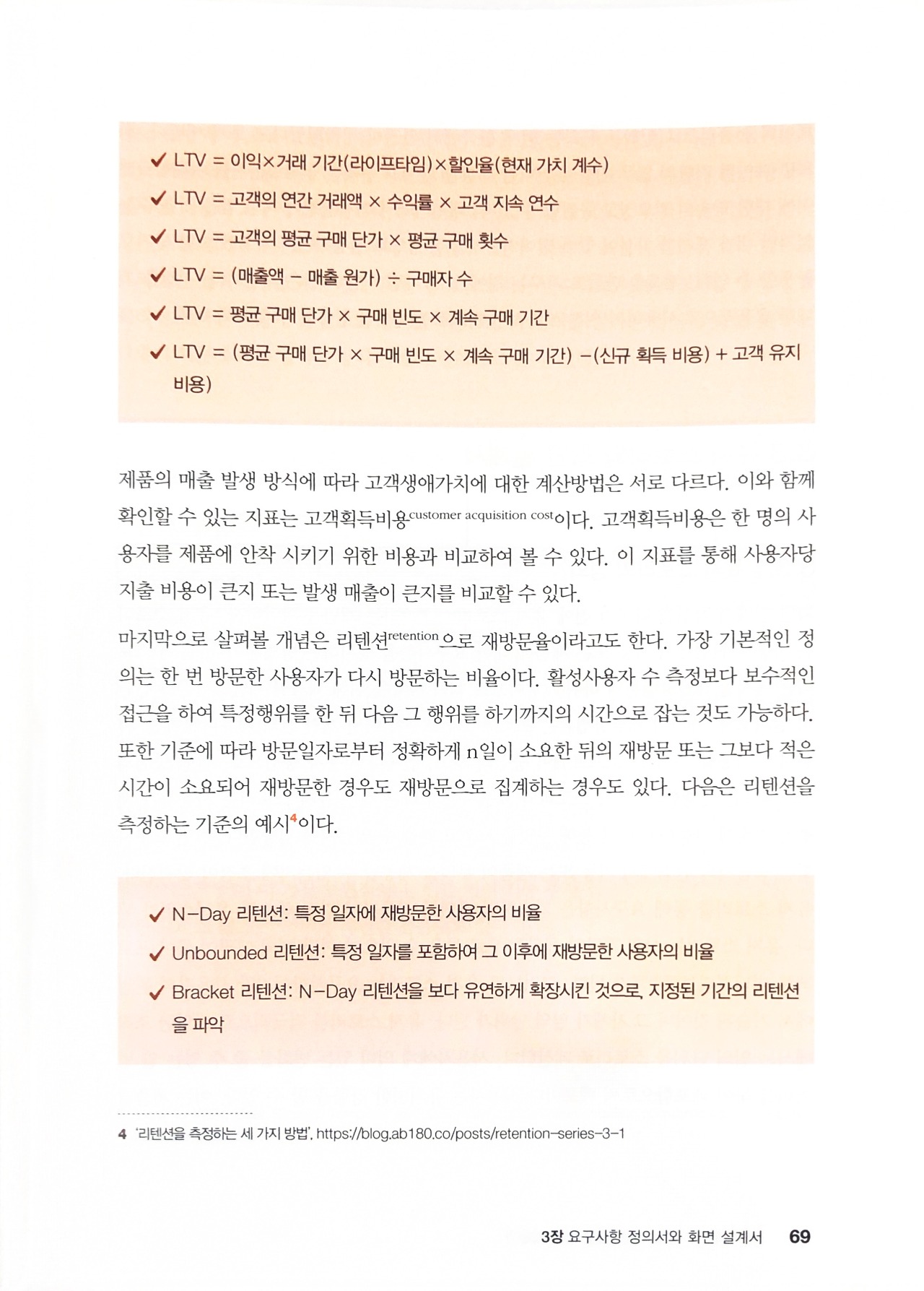활성사용자 active users 이탈률 churn rate 고객생애가치 customer life time value 재방문율 retention rate 전환율 conversion rate